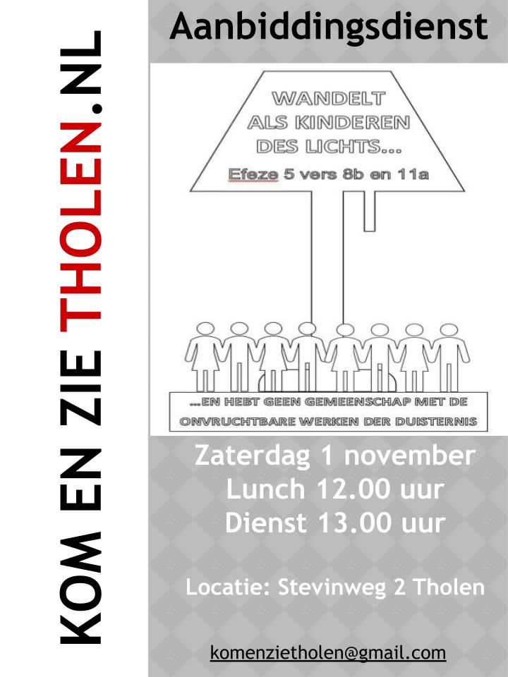 Elke eerste zaterdag van de maand is er een heerlijke aanbiddingsdienst op Tholen.Wij willen, samen met jou, de nieuwe wijn zijn, die men in nieuwe zakken doet. Wij focussen niet op de onrechtvaardigheid van de wereld, maar juist op de rechtvaardigheid van God en hebben vertrouwen in het volbrachte werk aan het kruis.